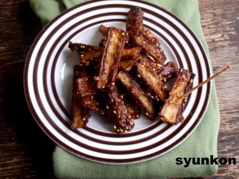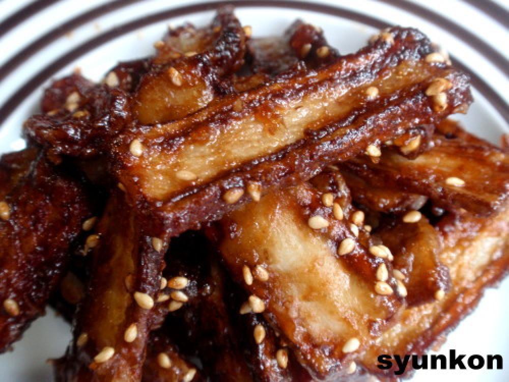 ![]() フライパンにAを入れて火にかけ、わーーーっと煮立ったらごぼうを入れて絡める最後に白ゴマも絡める。