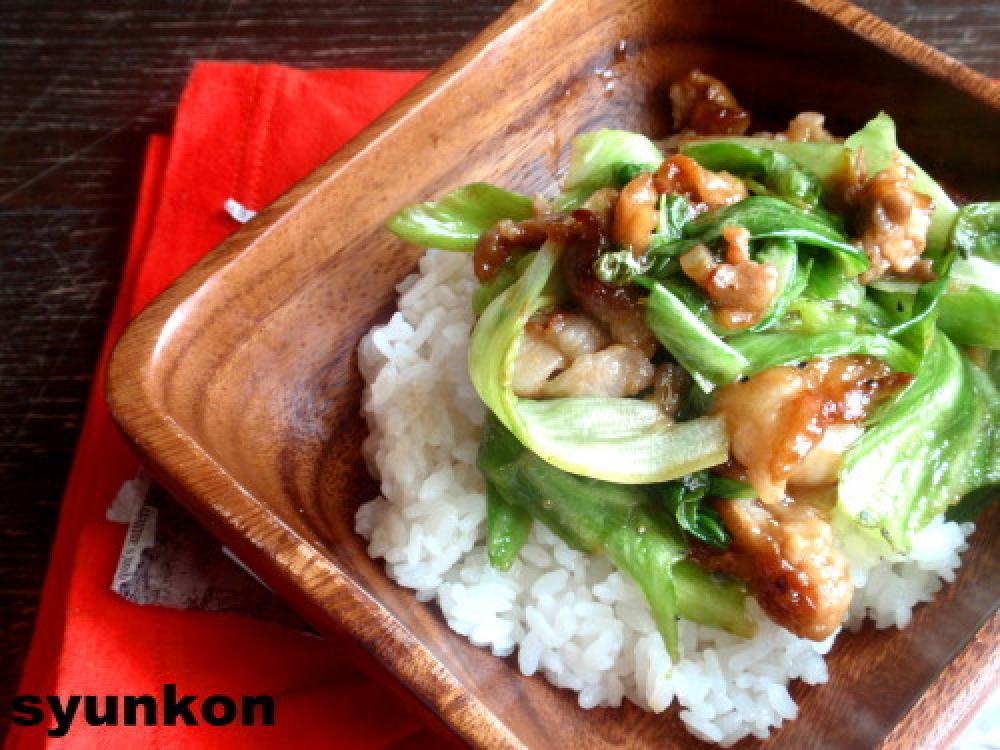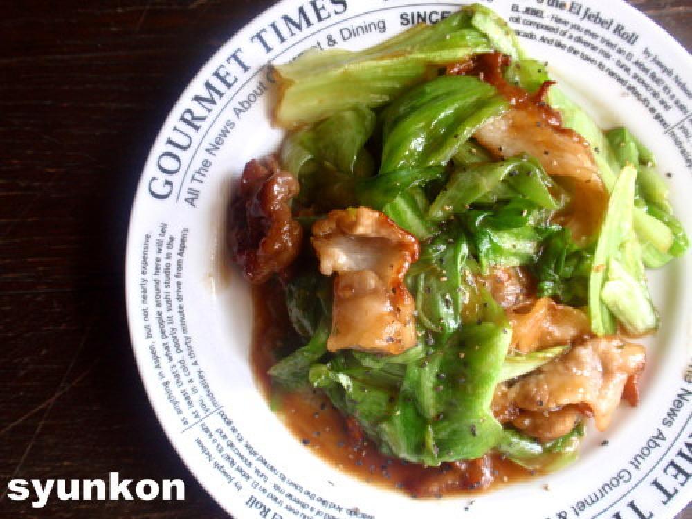 肉の色が変わったらレタスを加え、すぐにBを加え、一瞬で火を止める。