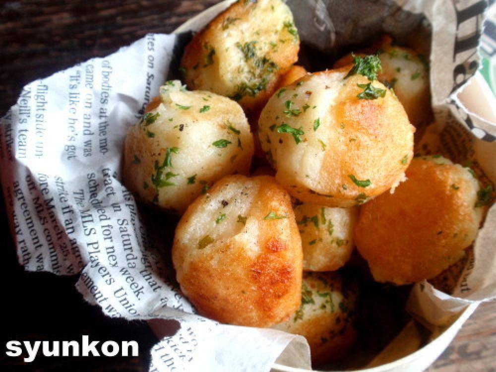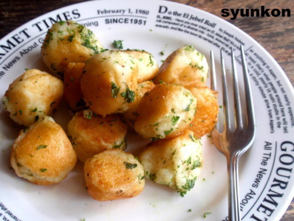 ちっさく丸めて、油(分量外)を多めにしいたフライパンでこんがり焼く。