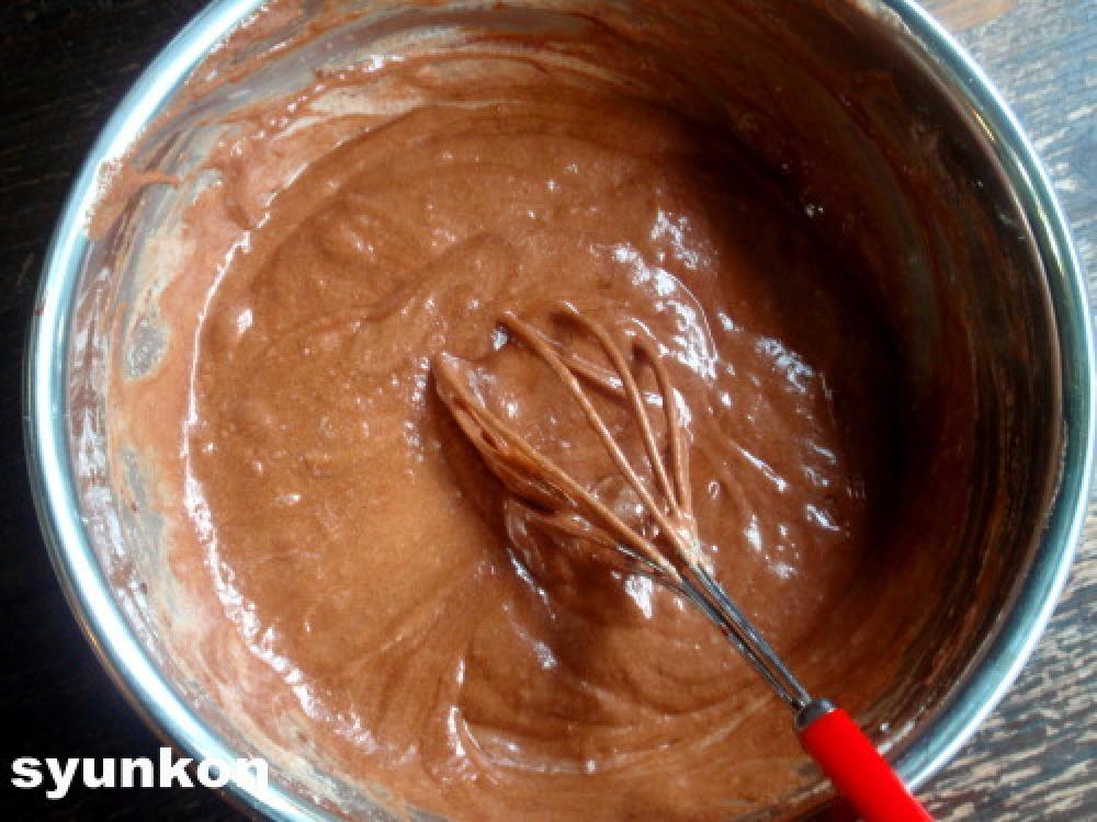 ![]() ふるっておいた小麦粉を混ぜ、底からさっくり混ぜます。