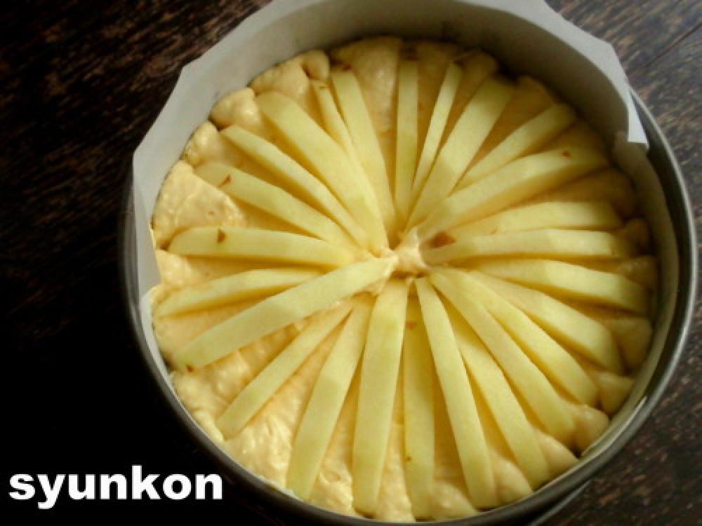 ![]() りんごを放射状に刺し、180度のオーブンで60分ぐらい焼く。