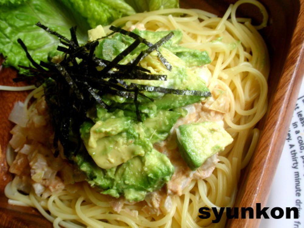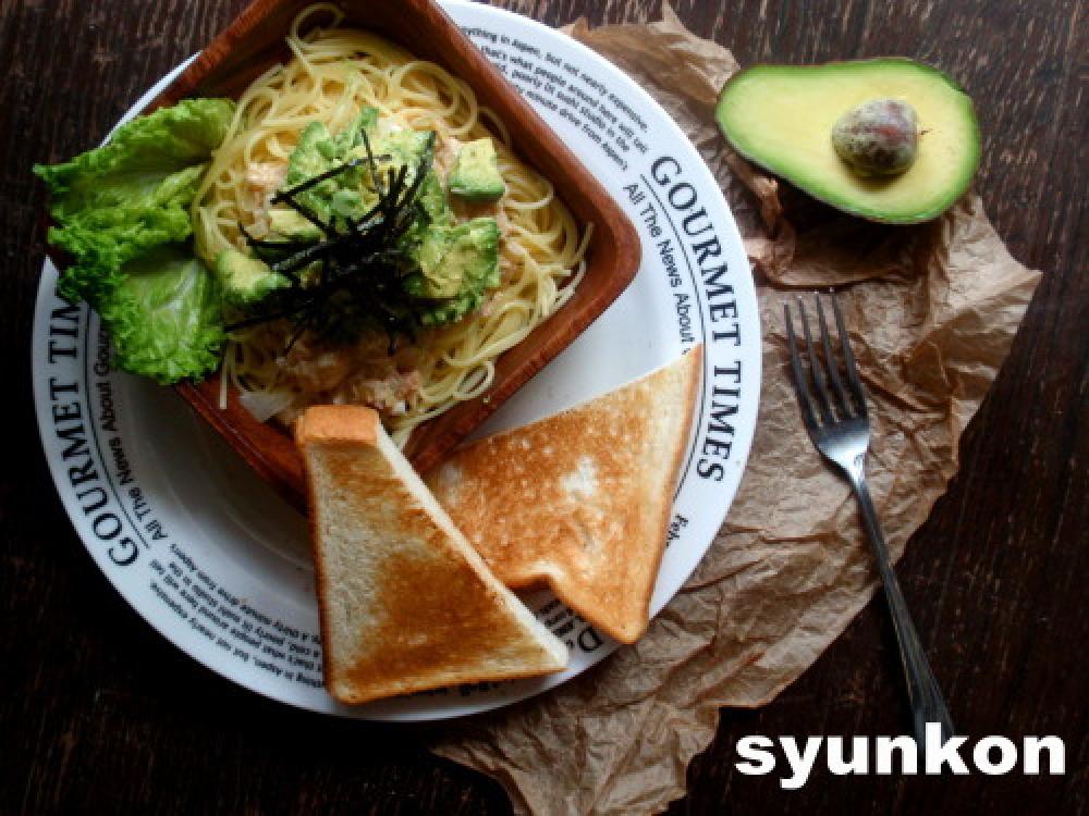 ![]() 上から、先ほどのツナ玉ねぎマヨ醤油を乗せ、アボガドを乗せ、刻み海苔を乗せ、完成。