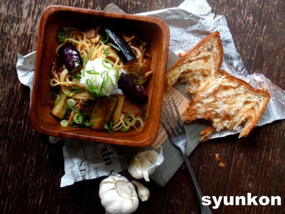 ![]() 器に盛り、揚げ茄子と大根おろしを乗せ、刻みネギも乗せる。
