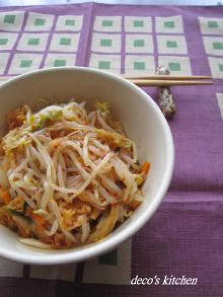 ボールに、①のもやしとキムチ、*の調味料を入れ、全体がなじむようによく混ぜて、完成♪