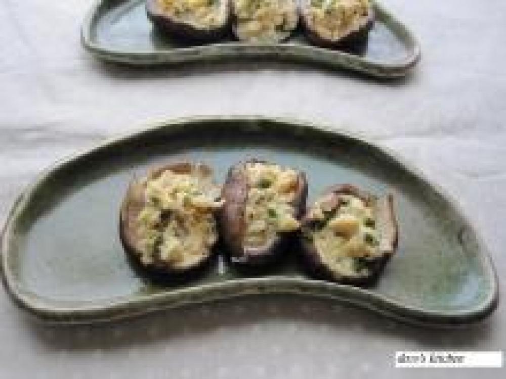 ②を6等分(しいたけの数に合わせる)し、しいたけのかさ内側部分に乗せる。(※汁気が多いので、こぼれないように注意!)