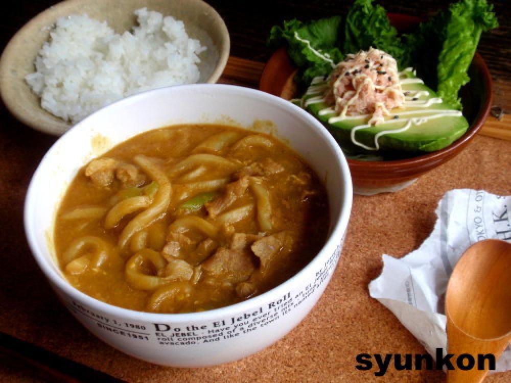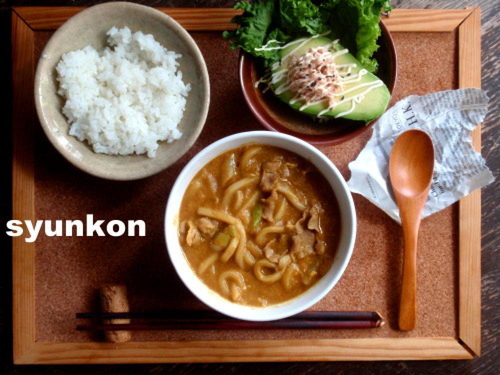 ![]() ネギと豚肉を入れ、色が変わったらうどんも入れ、溶いた卵を入れ、カレールーも入れる。