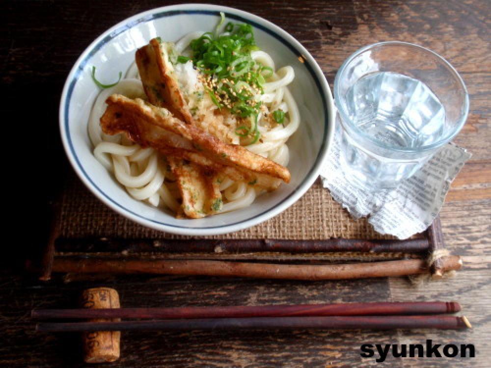 ![]() 器にうどんを盛り、大根おろし、ちくわ、ネギ、ゴマを乗っけて、めんつゆをぶっかける。