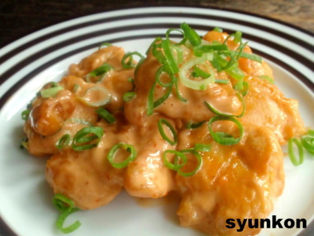 フライパンにゴマ油をしき(なければ何油でも)、鶏を両面こんがり焼き、Aのボールで和える。