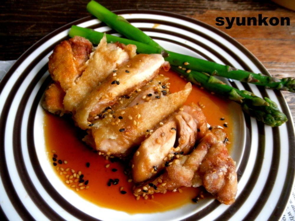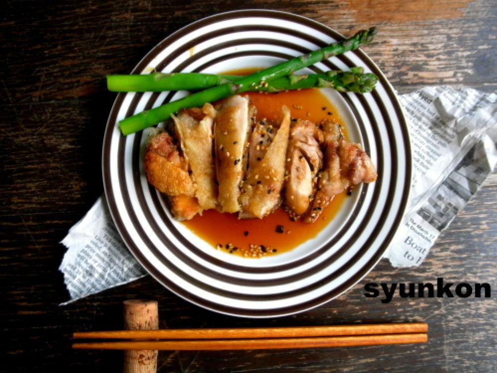 フライパンに油(分量外)を1センチぐらい熱して、鶏を皮目を下にしていれ、こんがりしたら裏返し