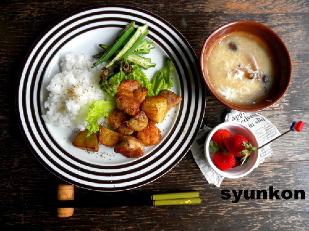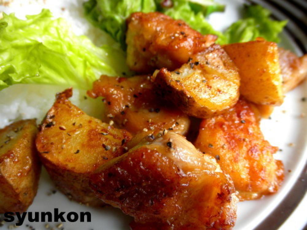 蓋をして中まで火を通す。通ったらじゃがいもも入れてこんがり炒める。