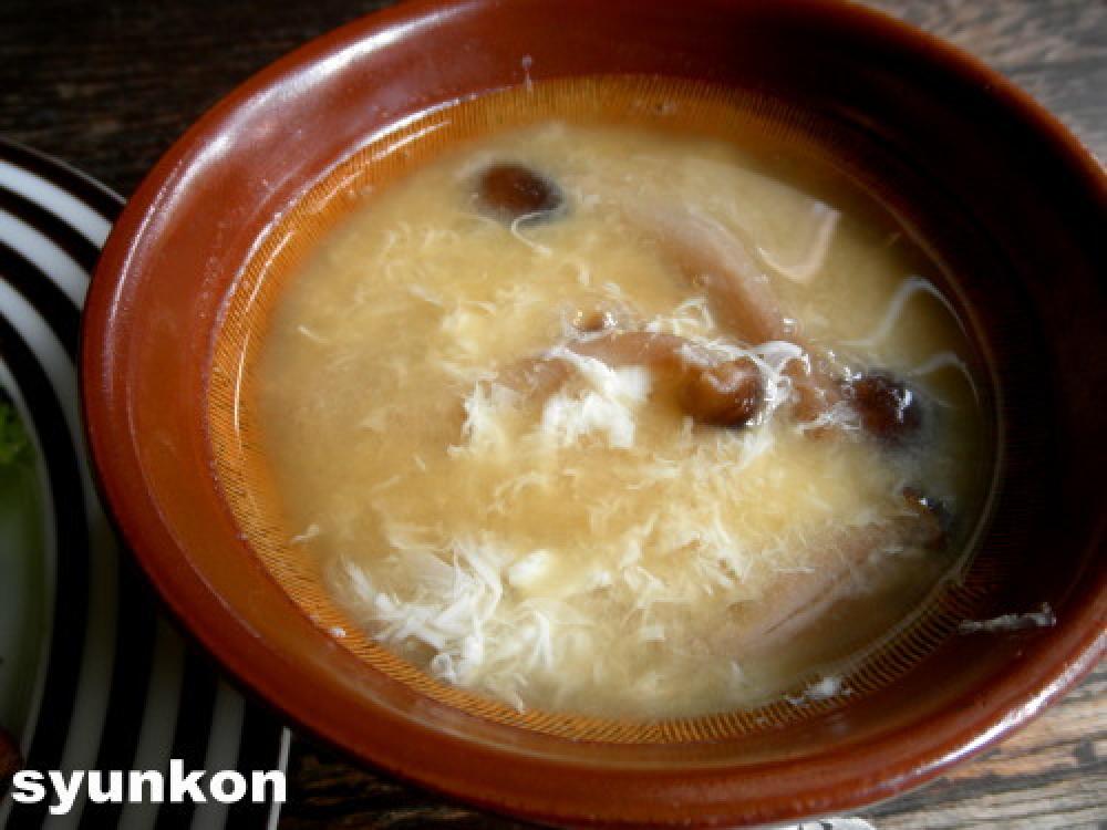 ![]() しめじのかきたま味噌汁。味噌の最後にあまった卵白をいれるだけです。
