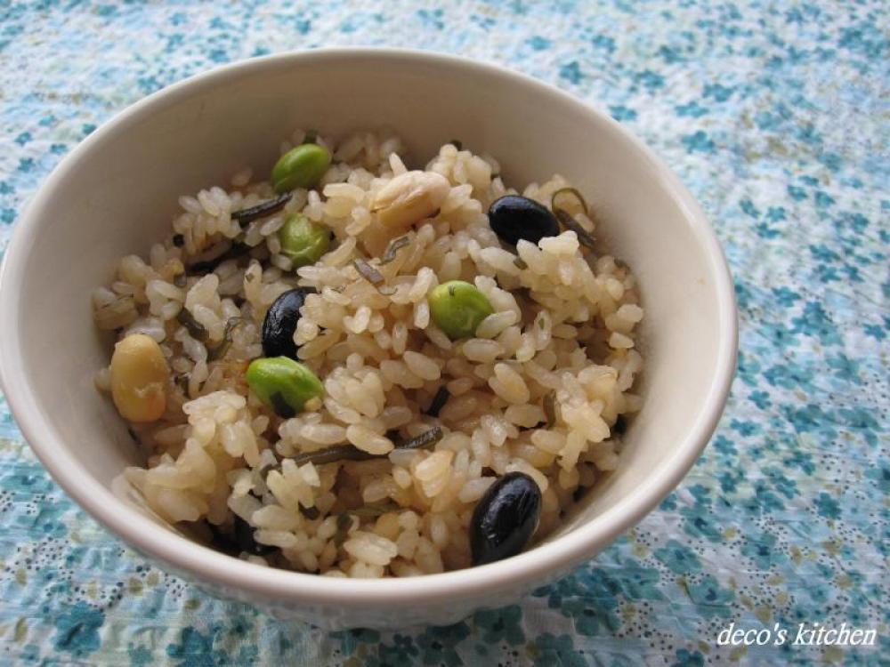 ①に豆をまんべんなく乗せ(混ぜない!)、炊飯器ならスイッチオン♪あとは待つだけ~