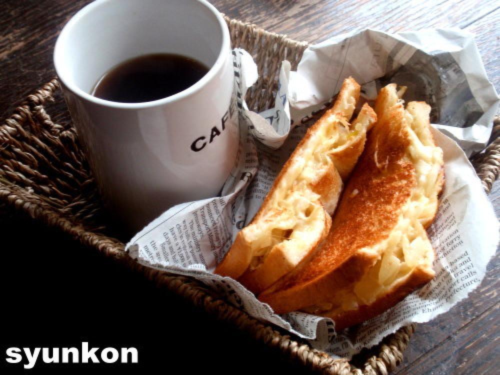 ![]() 食パンに乗っけてチーズも乗っけて挟んでオーブントースターで焦げ目がつくまで焼く。