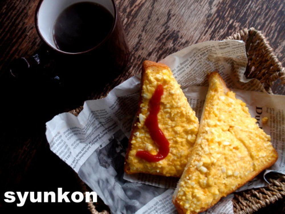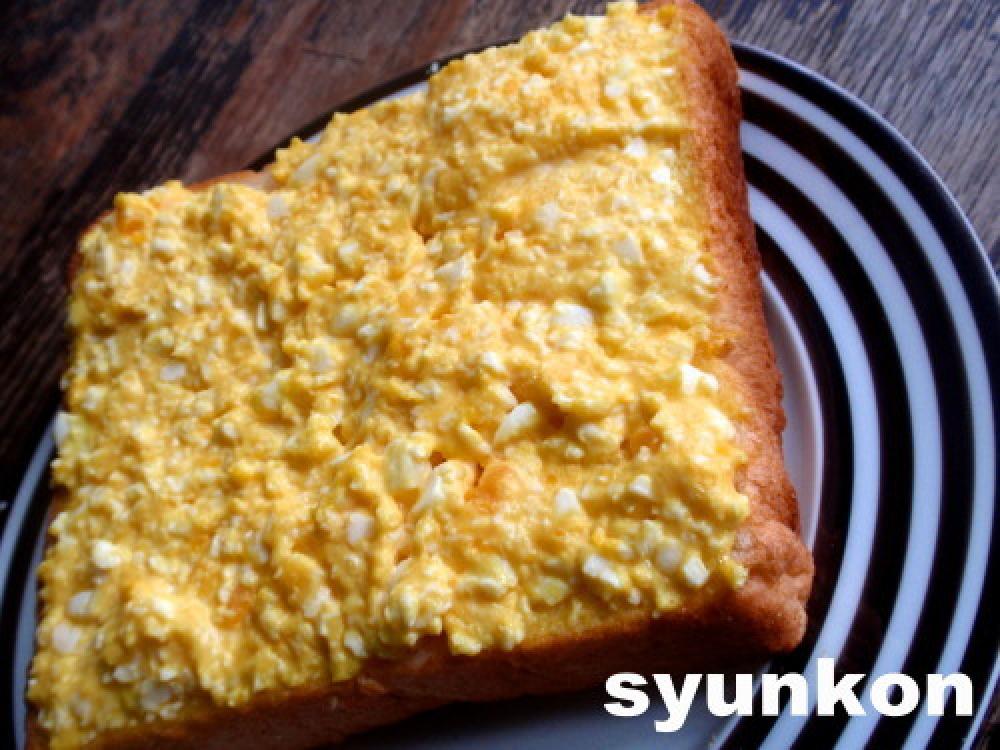 ![]() ゆで卵をみじん、あ、食パンに塗り、オーブントースターで裏に焦げ目がつくまで焼く。