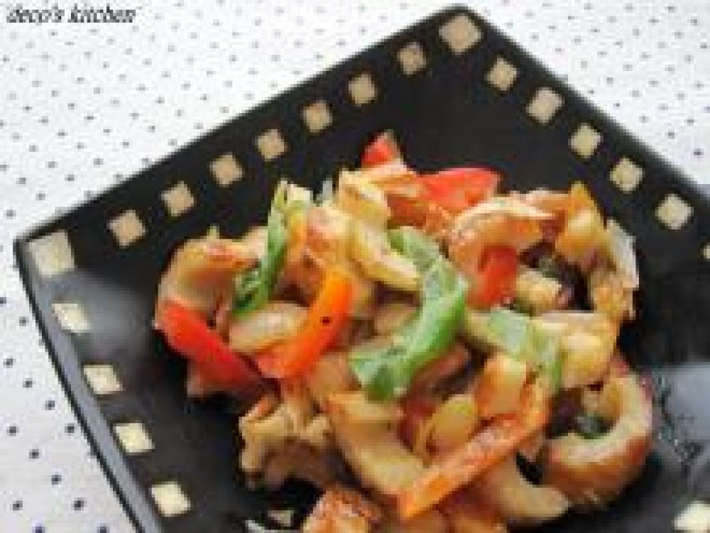 フライパンに油を熱し①を投入し塩こしょうし、焼き色が付くまで炒める。ねぎやパプリカが、いい感じに焼き色がついてるくらいに