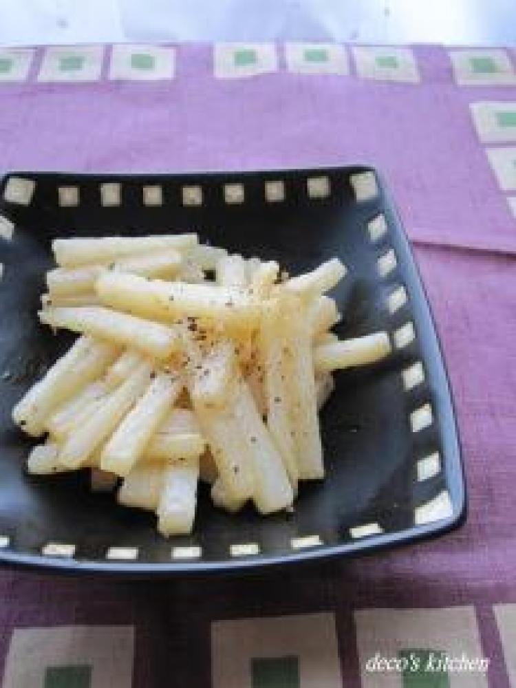 長いもを、5~7mm角、長さ5cmくらいに切る。