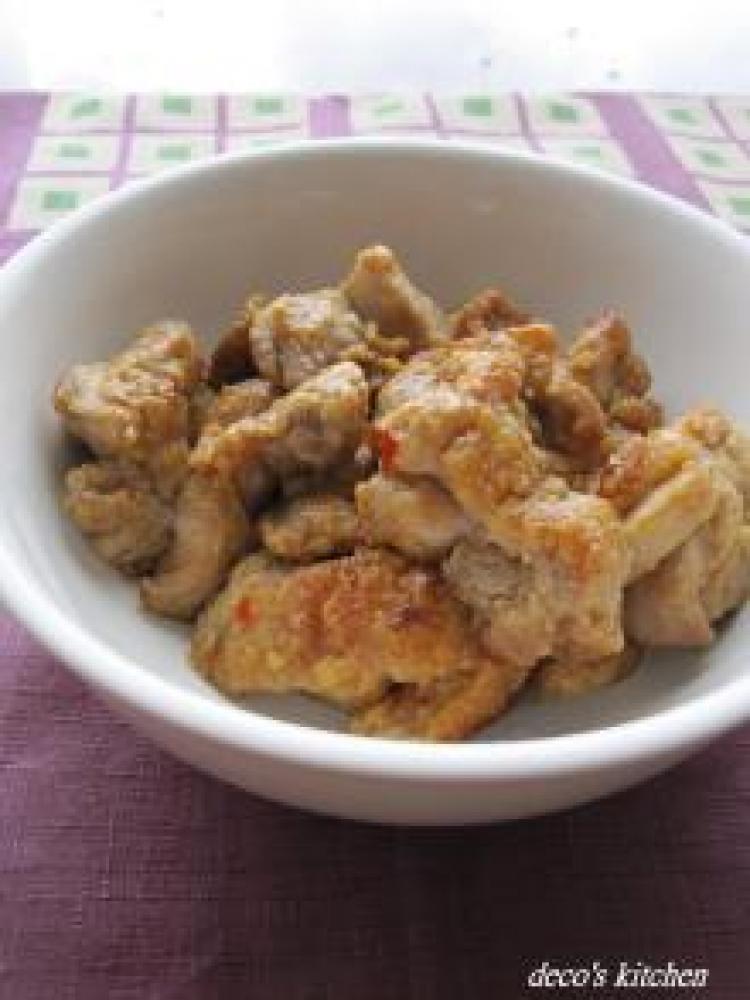 とりもも肉は、一口大に切り、塩こしょうを少々と酒大さじ1をふりよ~くもみ込む。20分くらい放置。小麦粉をつける。