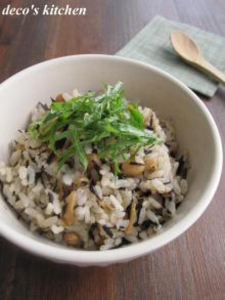 フライパンにごま油を熱し、ひじきと大豆を入れて炒める。続いてなめたけも加え、全体をよくなじませるように炒める。