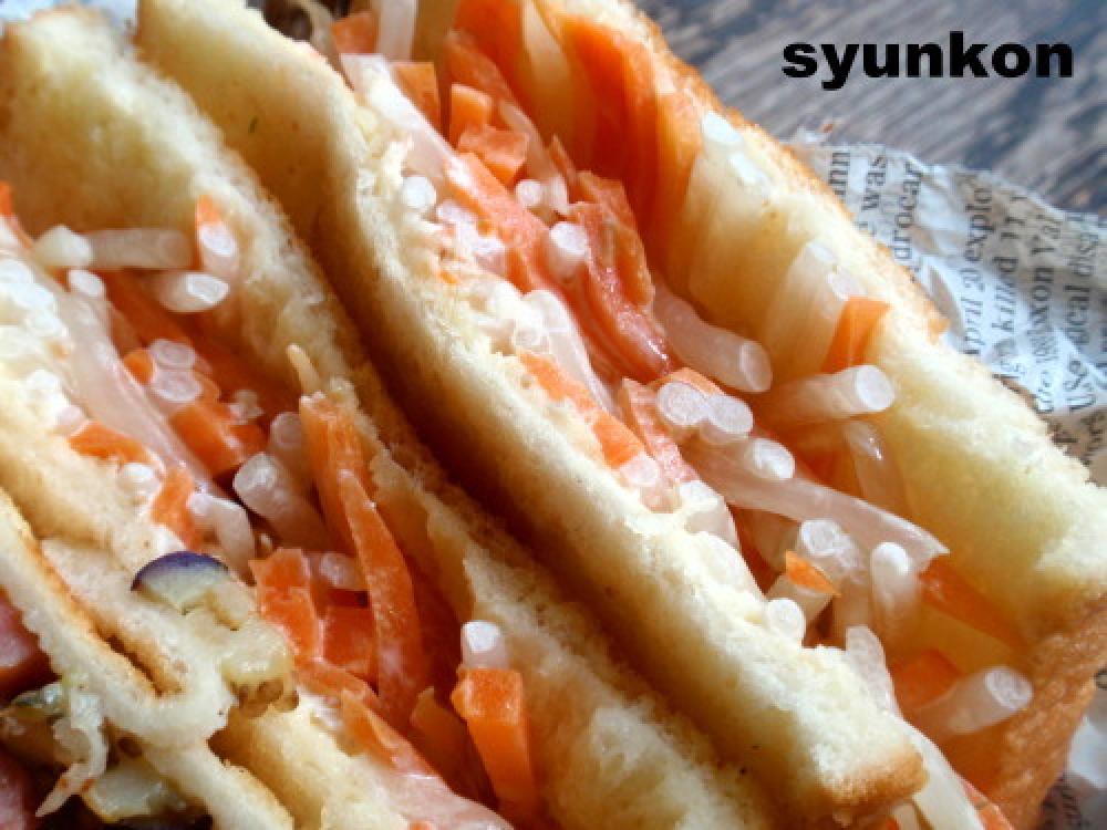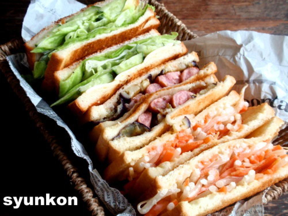 ![]() パンを焼いて、バターかマーガリンを塗り、今のんを挟む。