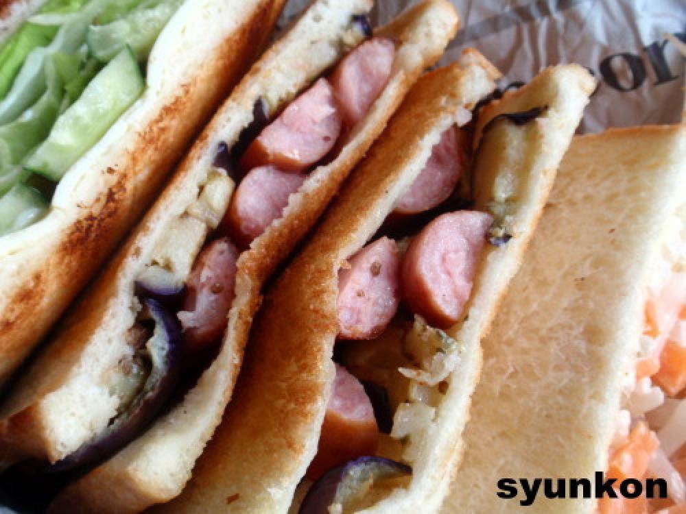 茄子は薄く切る。ウインナーは縦に半分に切る。