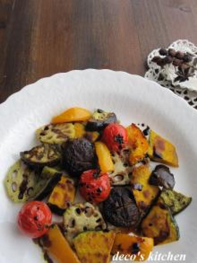 グリルにお野菜たちを並べ、強火でこんがりと焼く。(我が家のグリルで片面8分、計16分)