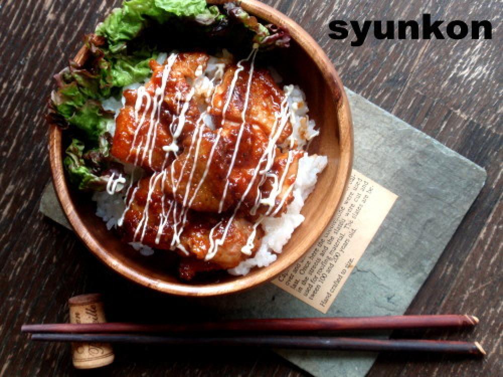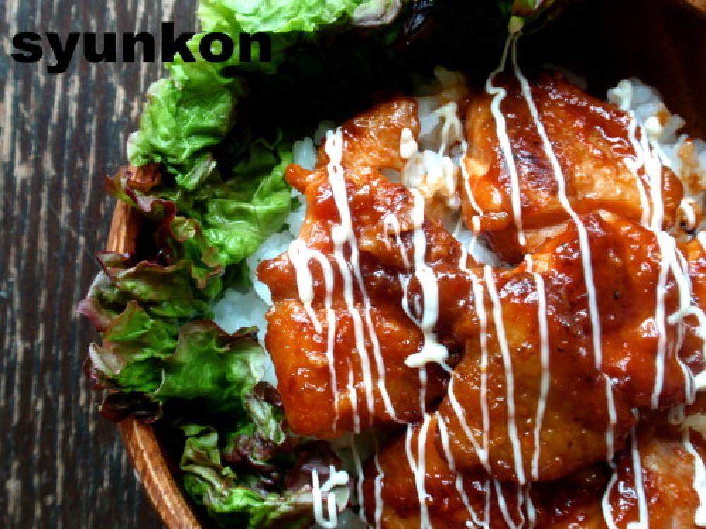 ![]() 器にご飯を盛り、鶏肉を乗せ、マヨネーズをかける。出来上がり。