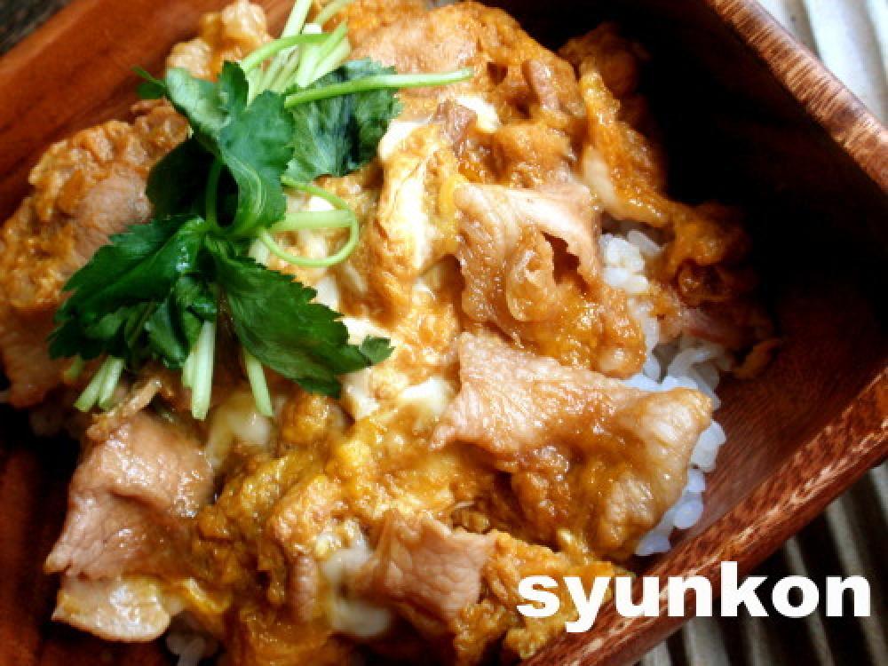 豚肉に火が通ったら、卵を溶いてまわしいいれ、半熟1歩手前で火を止める。