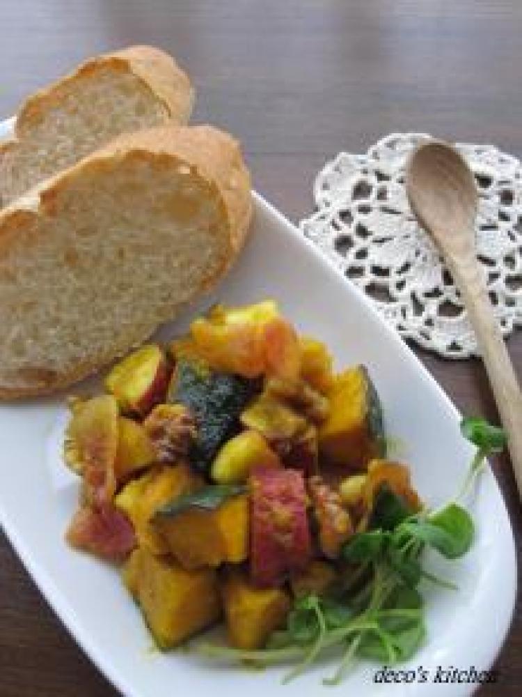 さつまいもとかぼちゃは、よく洗って、皮付きのままで、1.5cm角くらいにカット。