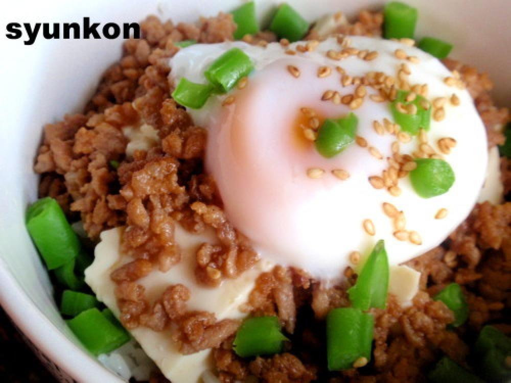 ごはんに豆腐をくずして乗せ、今のんを乗せる。