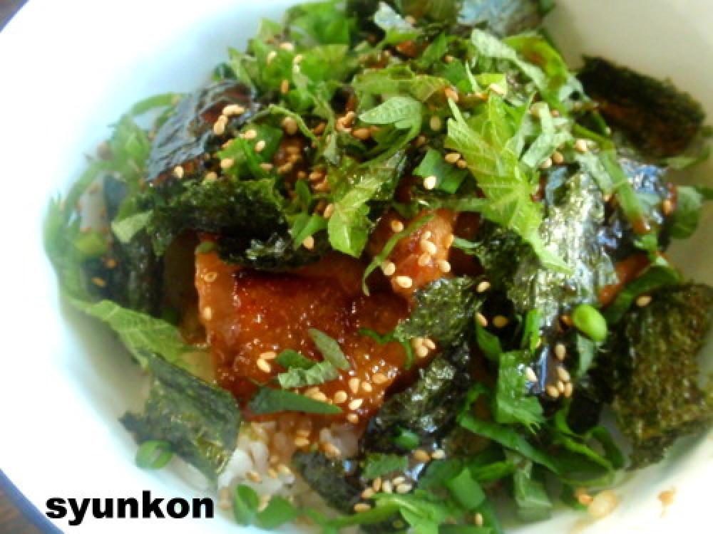 ![]() あ、でもそれは乗せすぎやわ。もう器どころか床にまで大葉が溢れてるやん。