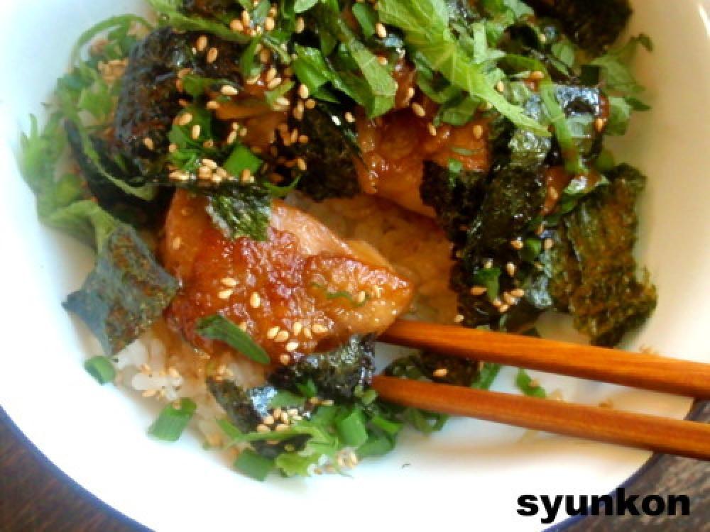 器にごはんを盛り、鶏を乗せたら、薬味を好きなだけ乗せる。