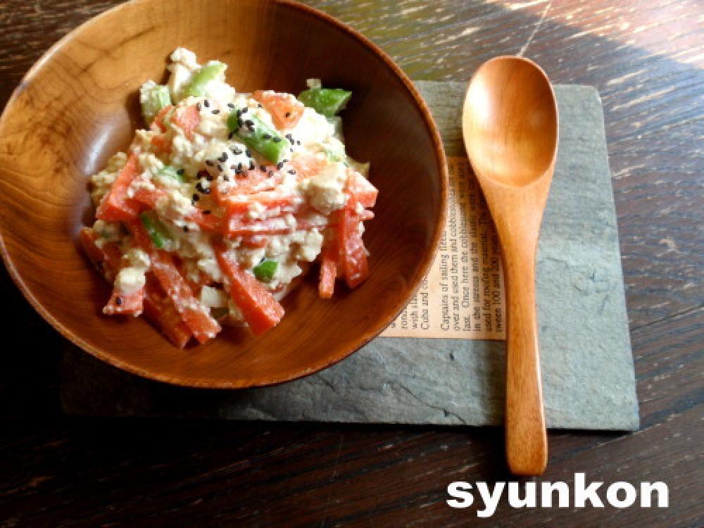 豆腐はクッキングペーパーに包んで上から重圧をかけて(「アナログ」のような)放置し、水切りする。