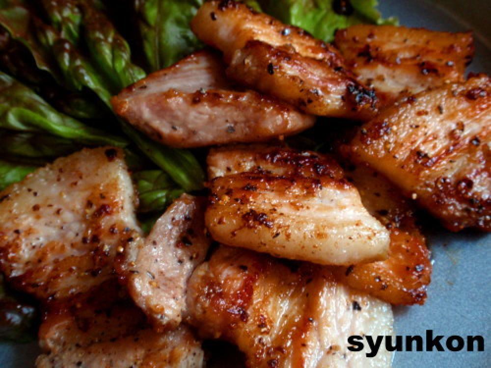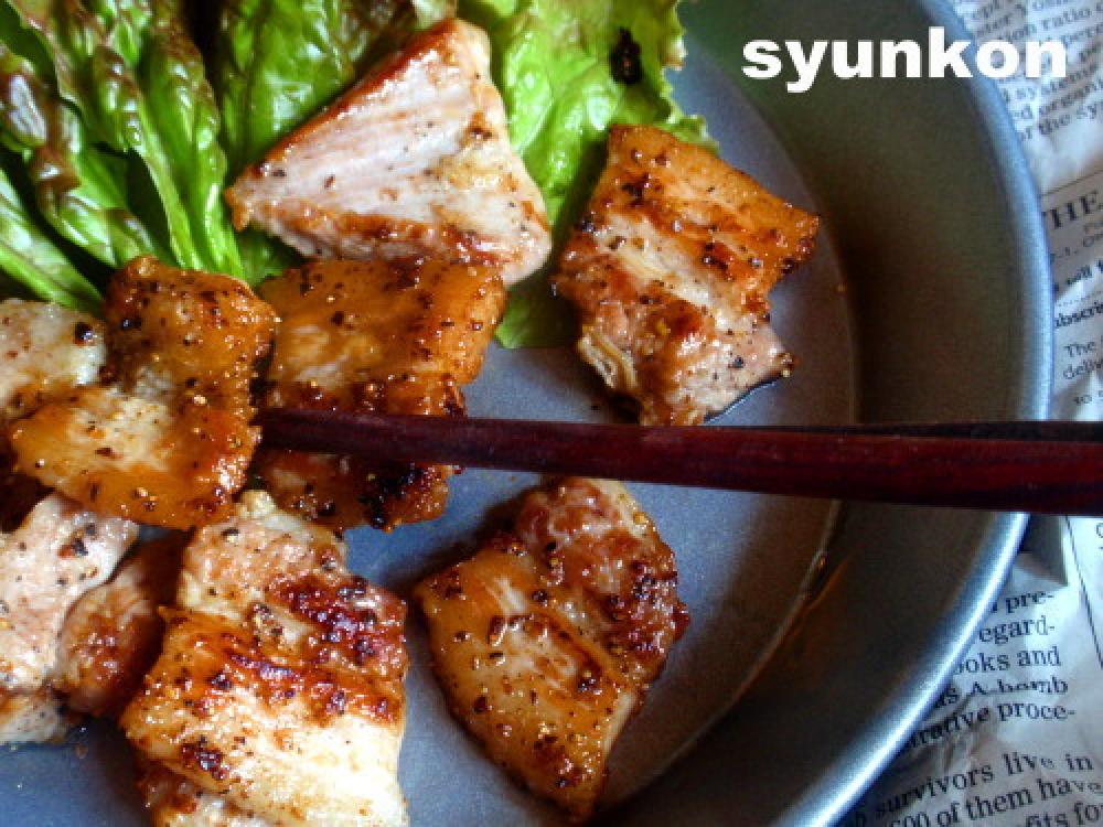 ![]() 黒胡椒をふって焼き、裏返し、裏面も黒胡椒をふる。