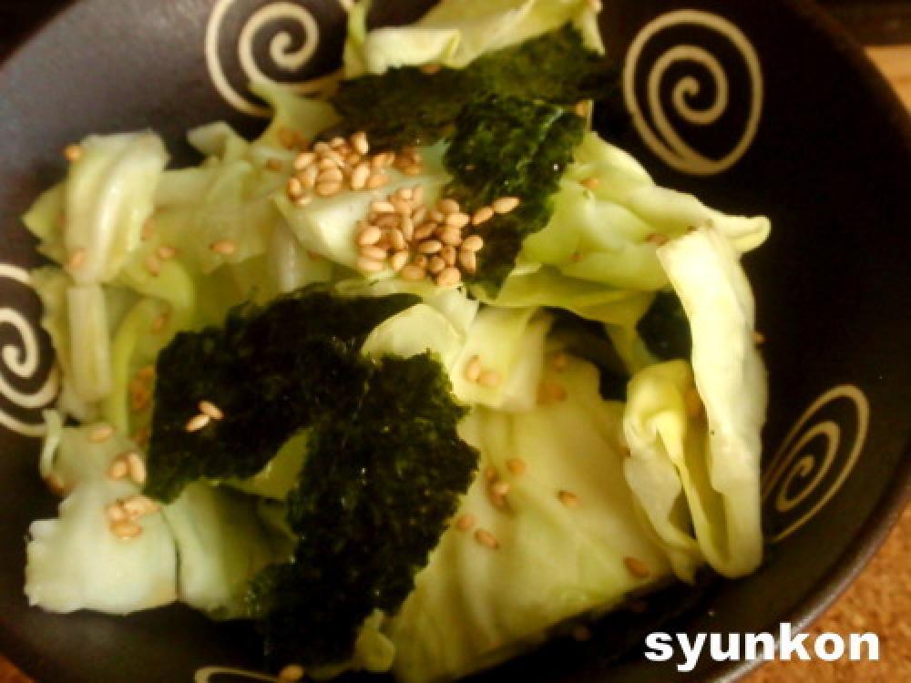 ![]() ちぎったキャベツに焼き海苔、ゴマ、ゴマ油、塩をかけたもん。