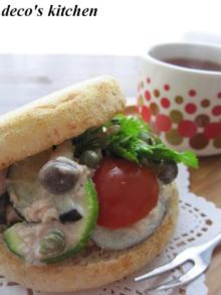ナスとズッキーニは、3mmくらいにスライスして半月に切る。しめじは子房に分ける。