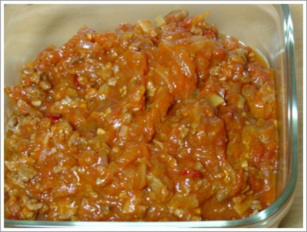 ![]() フライパンにオリーブオイルを入れ、ニンニクを炒めます。そのあと、玉ねぎも入れて炒め、透明になったらお肉を入れて炒めます。