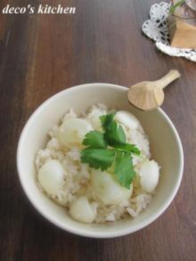 浸水させた米の上にゆりねを乗せ、炊飯器:スイッチオンで、炊飯器におまかせ~♪