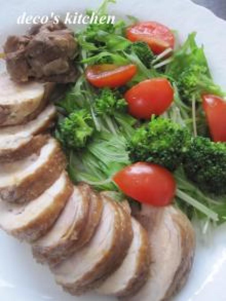 もも肉を、皮目を外側にしてくるくるっとロール状に巻き、タコ糸でぐるぐるとしばってとめる。