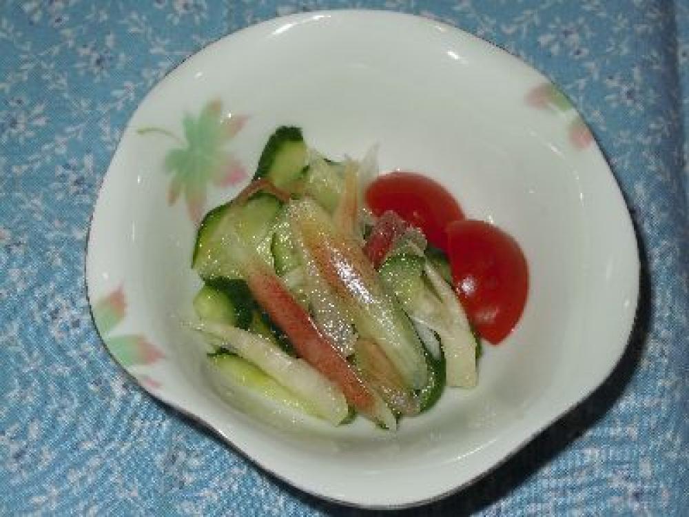 ![]() 半分に切ったプチトマトを添えて、小皿に盛る。
