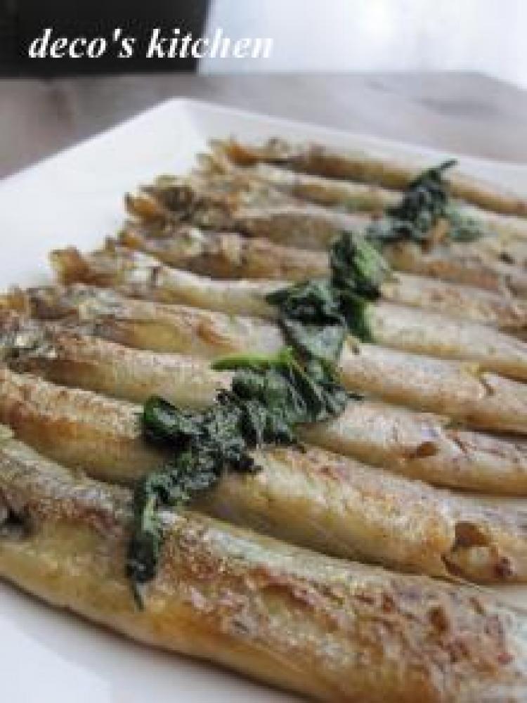 ライパンにバターをいれて火にかけ、とけてきたらししゃもを並べる。中火くらいで、両面をこんがりと焼く。