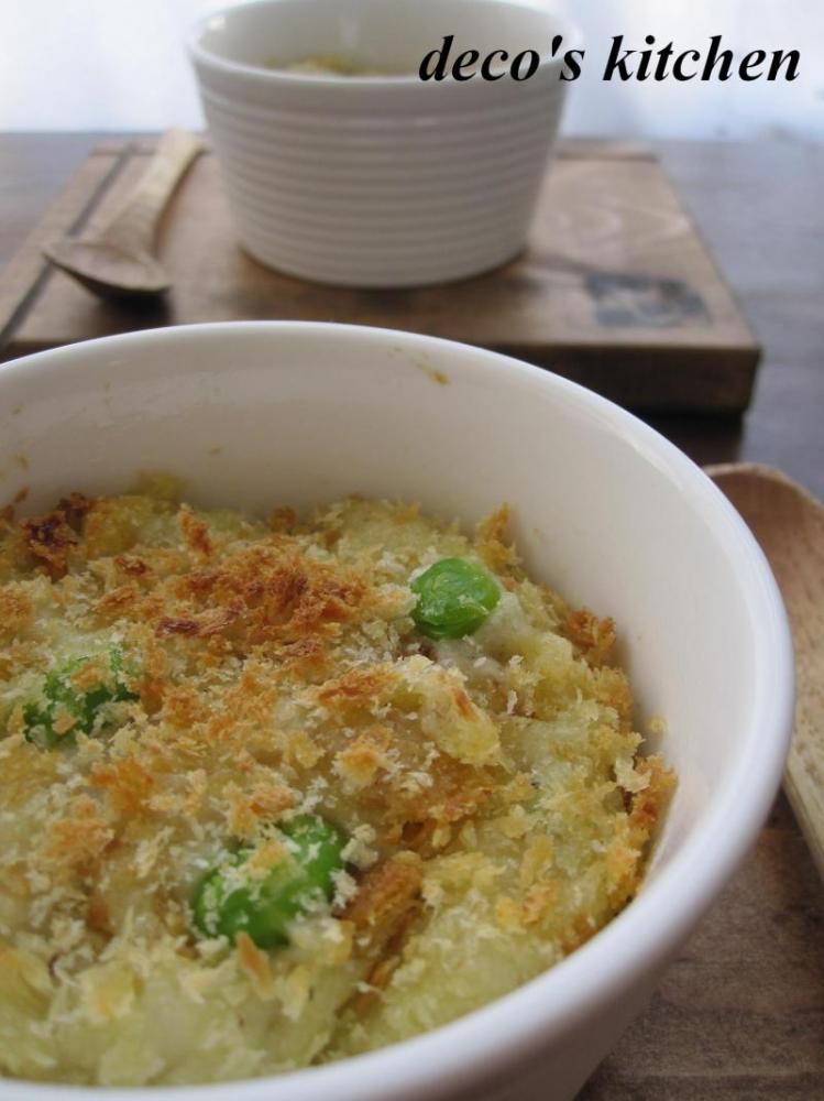 ココット型に入れパン粉をまぶし、オリーブオイルを回しかけ、オーブントースターで焼き色がつくまで(10~15分)焼く。
