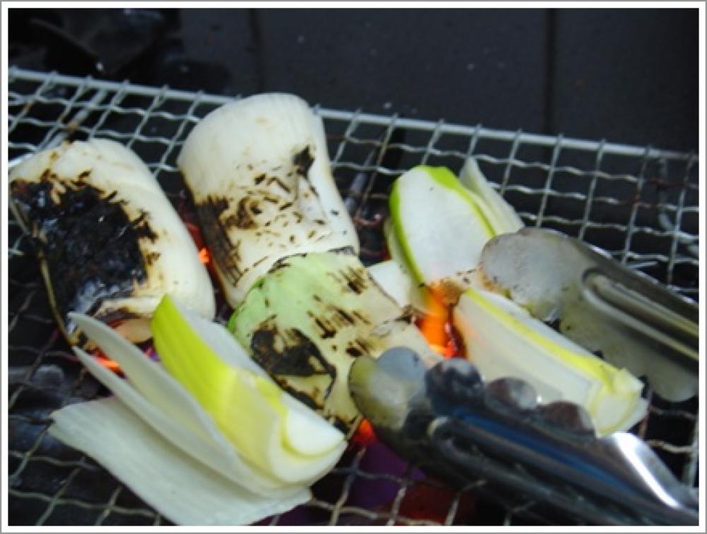 ![]() ネギは5~8センチの長さで縦割りにし、網焼きで焦げ目をつけておく。