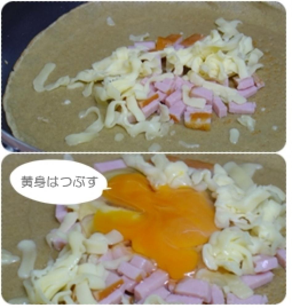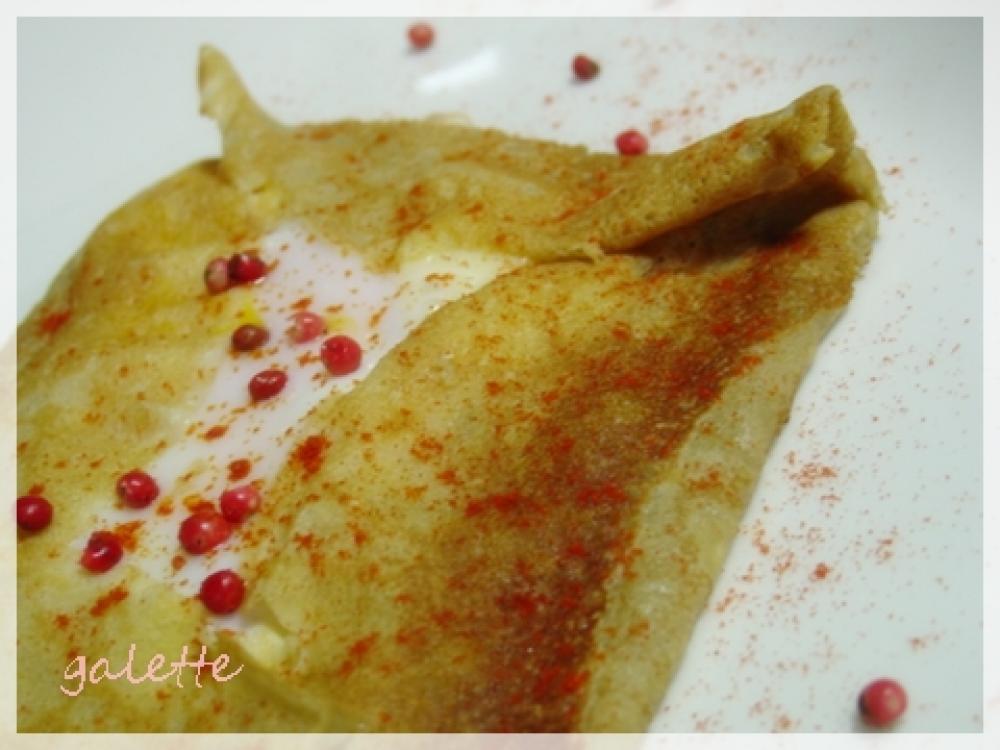 ![]() よく見かける?オーソドックスなガレットは、ハム・チーズ・卵 の取り合わせかな。