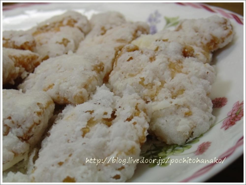30分から1時間漬けたあと、1枚ずつ、片栗粉につけて油で揚げる。