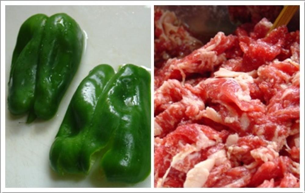 ![]() 牛肉、ピーマン、玉ねぎを千切りにする。牛肉は、切り落とし!を買ったので、そのまま使いました。