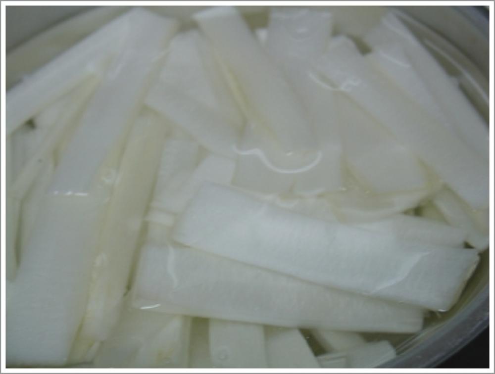 ![]() うどは皮をむいて短冊に切り、酢水(分量外)につけてアクを抜く。