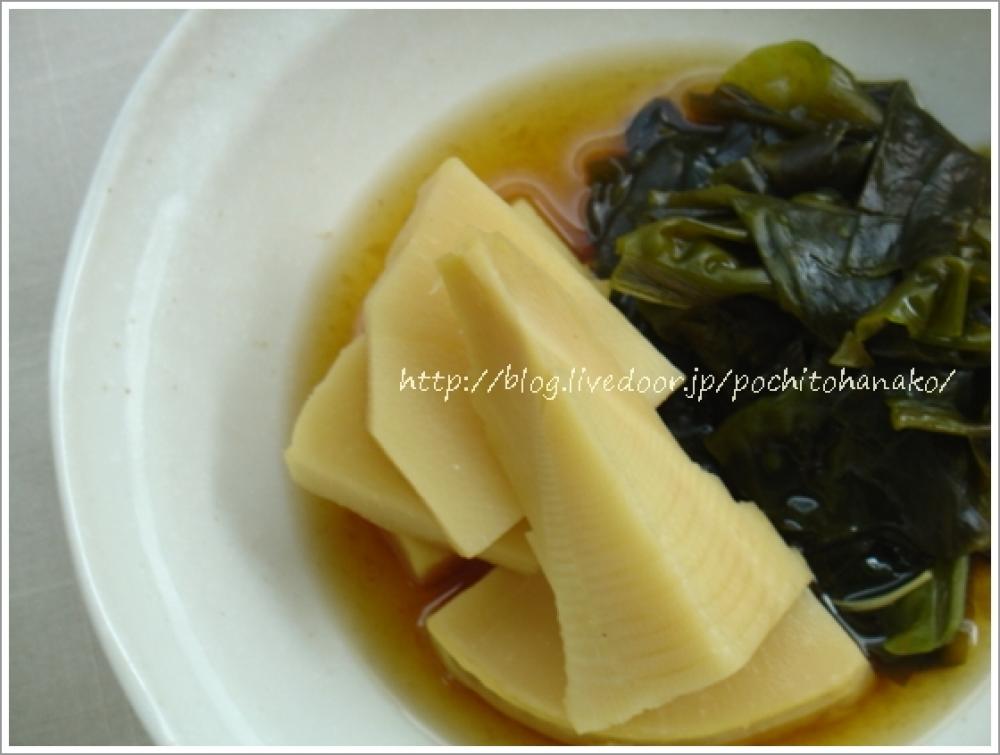 ![]() 味が決まったら、筍とわかめを入れ、落としぶたをして、弱火で20分~30分。筍に味がしみるまでを目安に煮つける。
