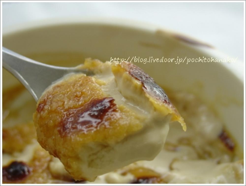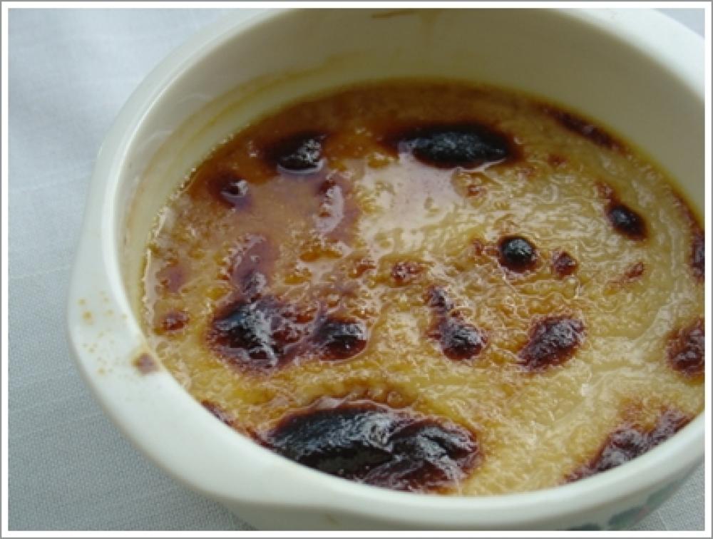 ![]() 冷めたらグラニュー糖をふりかけバーナーであぶるか、グリルで焼いて表面のグラニュー糖を溶かして焦げ目をつける。