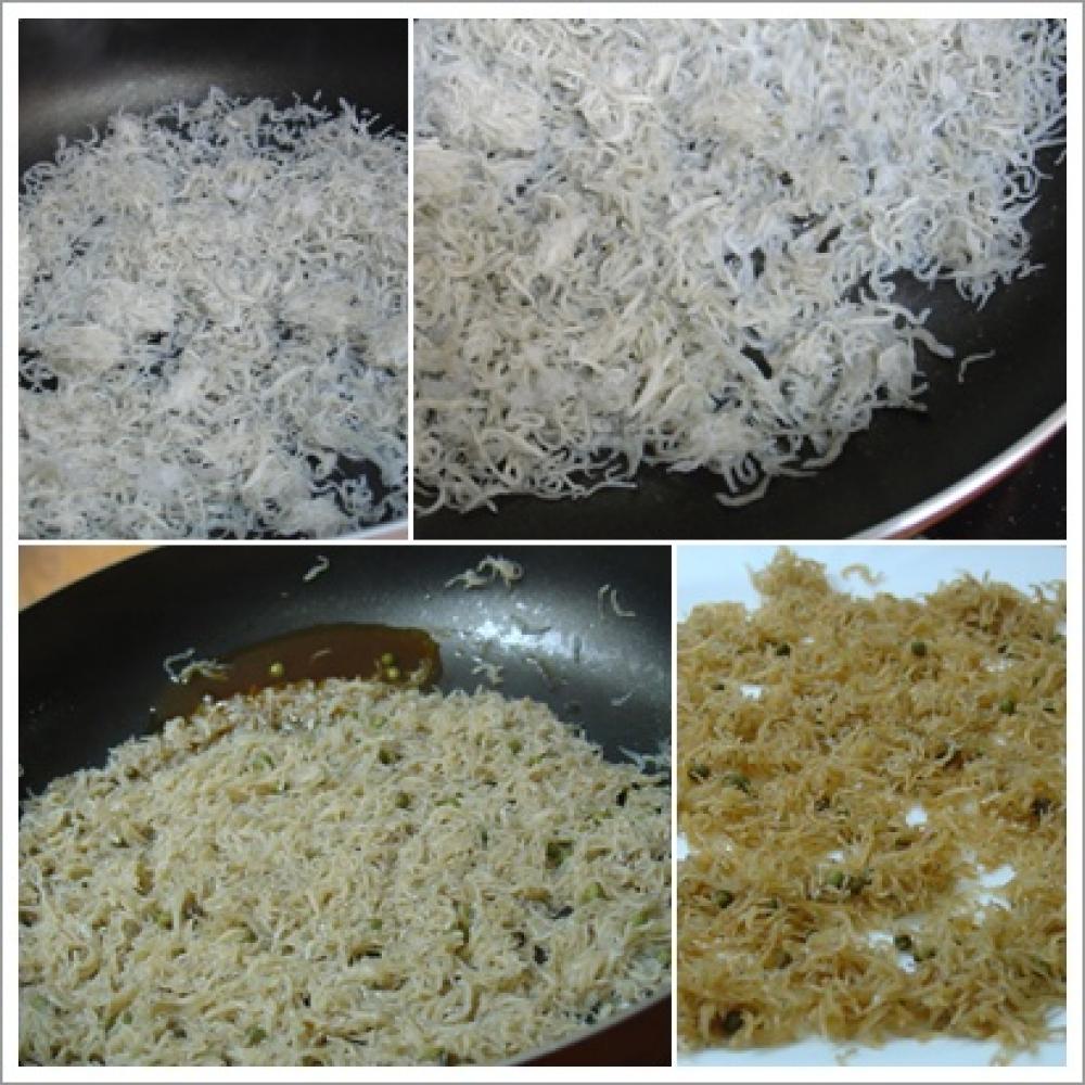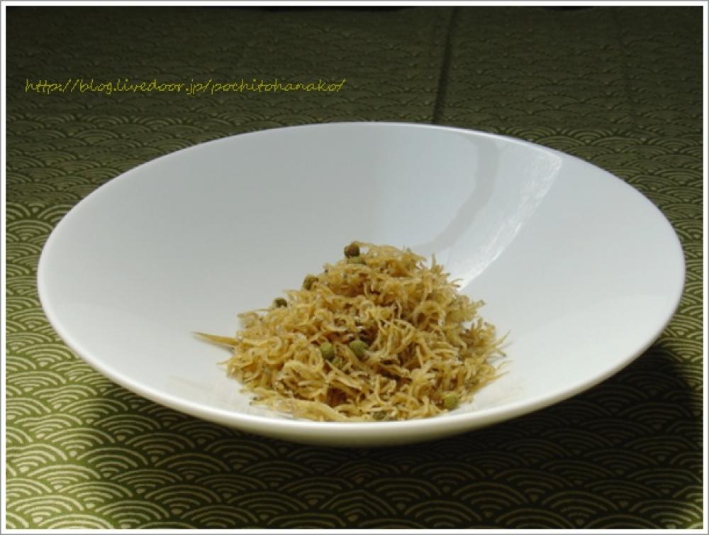 ![]() お鍋(今回はフライパンです)にちりめんを入れて少しカラ炒りし、臭みを取る。
