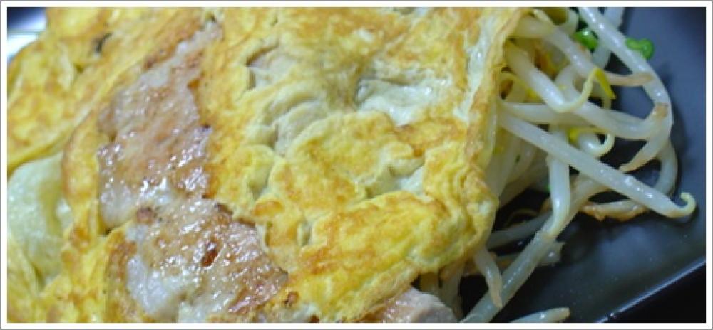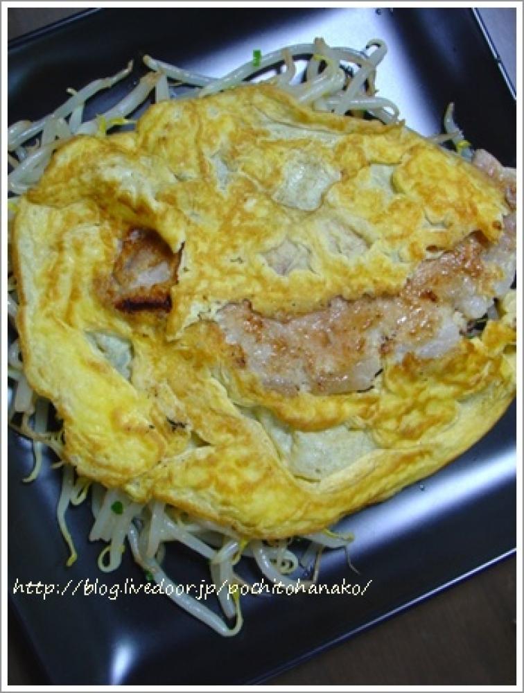※この時、豚肉と一緒に残りの卵も加え、火が通ったら返して反対の面も焼く。